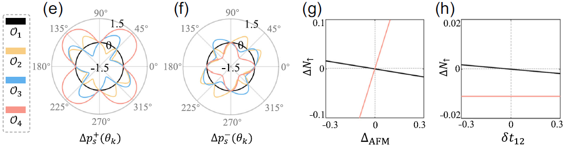 研究团队还提出,可通过测量自旋电导与自旋分辨的轨道极化等物理量(图3),来区分不同类型的自旋-轨道交错磁体。此外,理论还预测,在特定条件下,该体系可诱导出微弱的净磁化(弱铁磁性),并伴生反常霍尔效应,为实验观测提供了便捷而有力的“指纹”信号。
