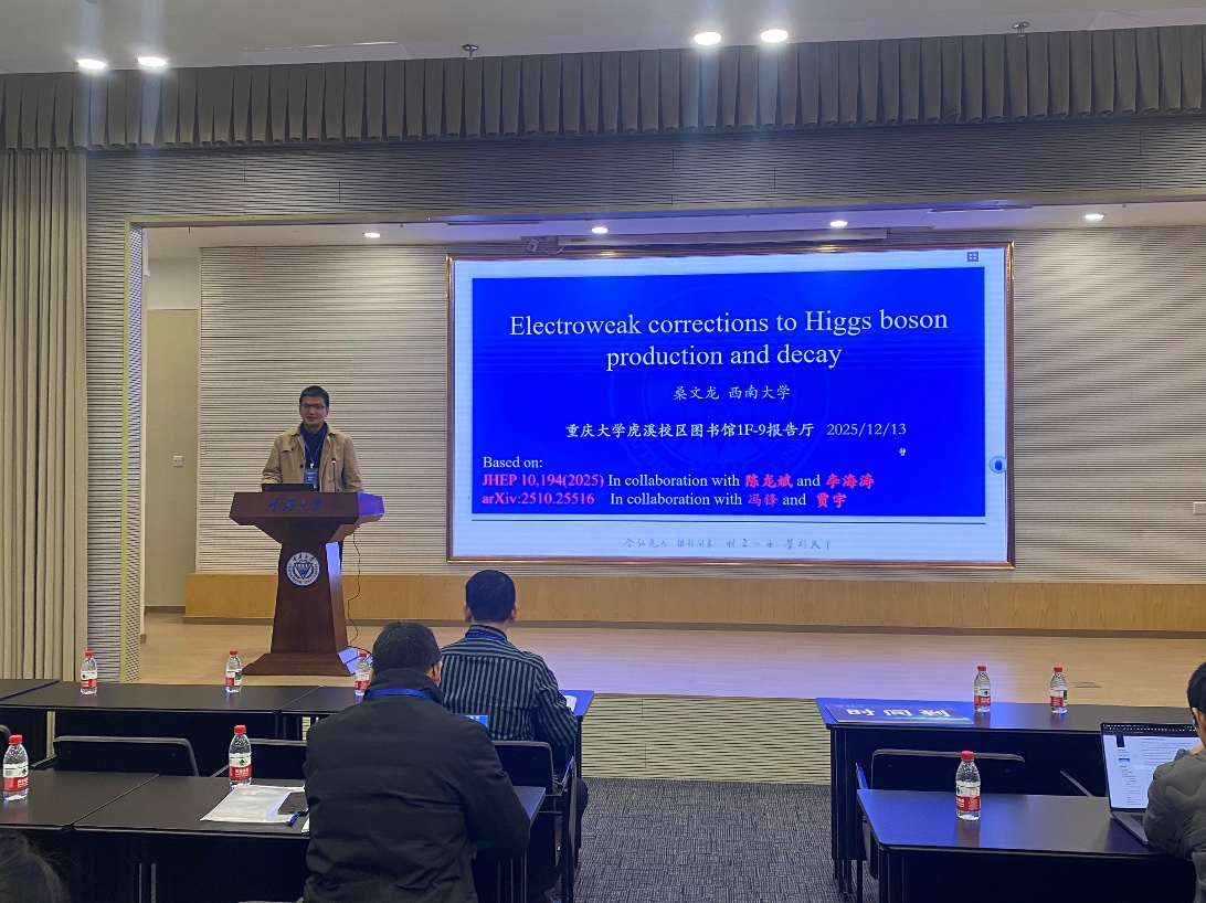 2025年12月12日至14日,重庆市理论物理前沿学术研讨会在重庆大学科学城校区虎溪校园成功召开。本次会议依托国家自然科学基金委员会理论物理专款“西南理论物理中心”项目,由重庆大学和重庆物理学会主办,重庆大学承办。会议旨在深入研讨近年来在粒子物理、强子物理、核物理、宇宙学及量子物理等领域的重要进展,探讨国际相关前沿动态与发展趋势,深化重庆地区理论物理学界的交流与合作。会议吸引了来自山东大学、湖南大学、西南大学、陆军军医大学、重庆邮电大学、重庆师范大学、重庆理工大学、重庆科技大学、贵州民族大学、贵州财经大学等高校的近80名学者和研究生参会。